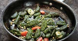 Zarte Ricotta-Spinat-Gnocchi an aromatischer Salbeibutter, verfeinert mit gerösteten Pinienkernen – ein wahres Geschmackserlebnis.